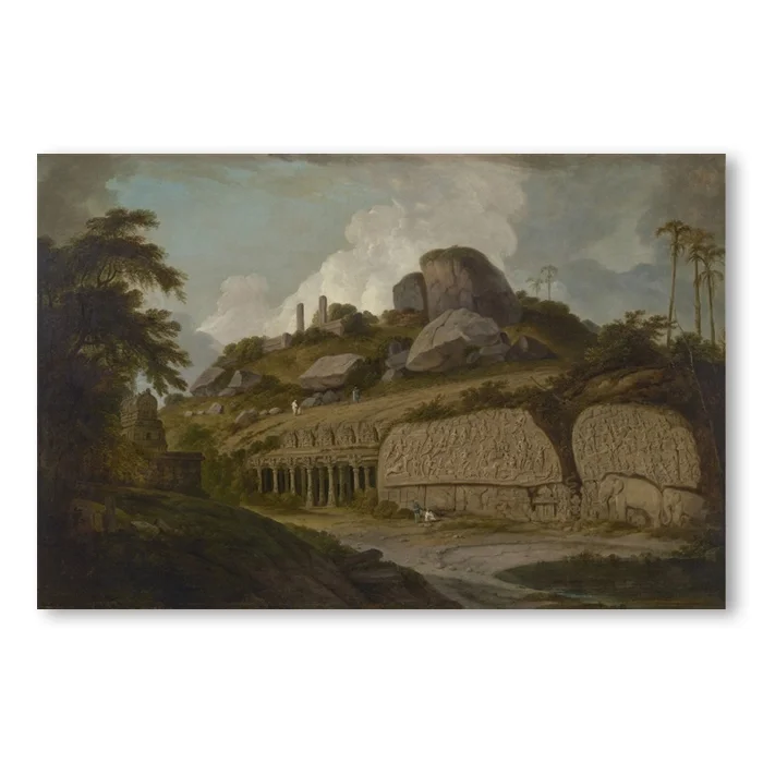 The entrance of an excavated Hindu cave temple at Mahabalipuram on the Coromandel Coast, circa 1794