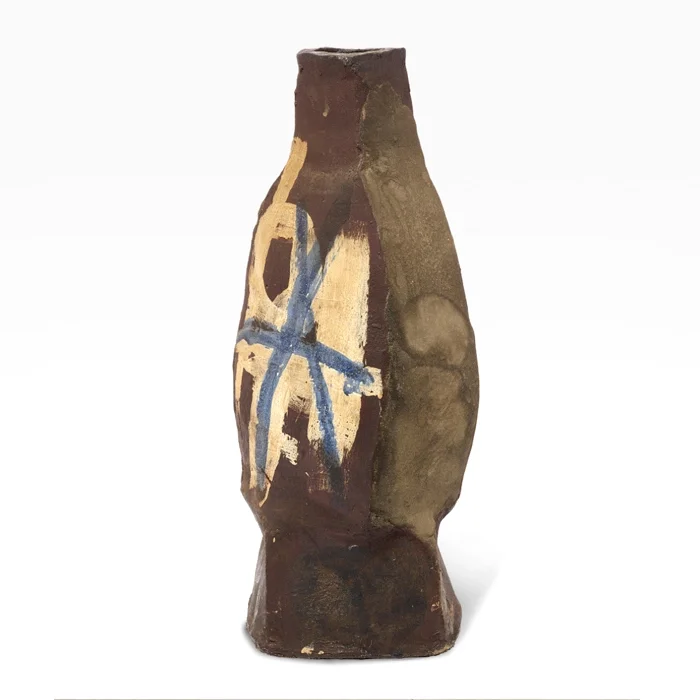 This Peter Voulkos ceramic came from the estate of fashion designer James Galanos of Beverly Hills. Galanos was one of the most famous American designers of his day and created dresses for Marilyn Monroe, Grace Kelly, Elizabeth Taylor, Jackie Kennedy and Nancy Reagan among many others. He had a style-driven and eclectic assembly of artworks and design from a myriad of periods which were specifically chosen for his architectural Beverly Hills home. This rare and spectacular example by Voulkos, one of Los Angeles’s most innovative artists, was befittingly offered and successfully sold in a curated sale of just works from California’s most important artists.