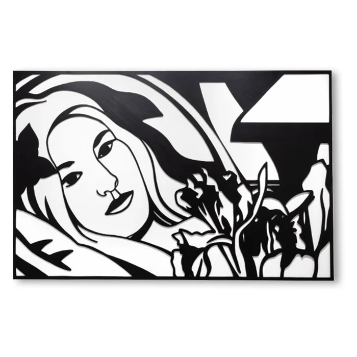 Steel Drawing / Bedroom Brunette with Irises (Black Variation #1), 1987-88